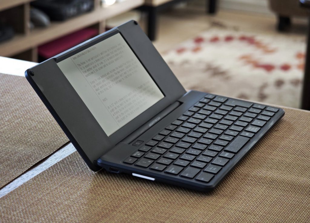 El Pomera DM250 lleva esta idea aún más lejos. Es una especie de máquina de escribir moderna que elimina todo lo que no tiene que ver con escribir. No hay navegador, ni aplicaciones, ni multitarea. Solo una pantalla y un teclado.