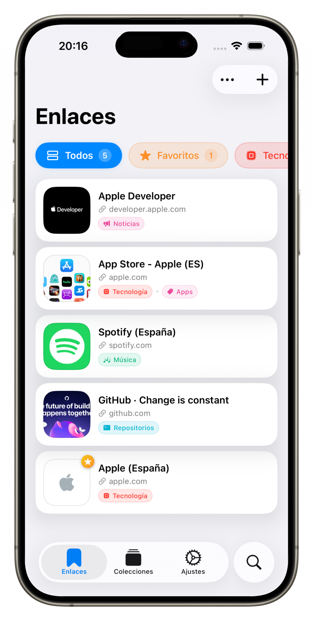 Organiza tus enlaces con categorías personalizables, etiquetas múltiples y colecciones temáticas. Encuentra lo que buscas al instante.