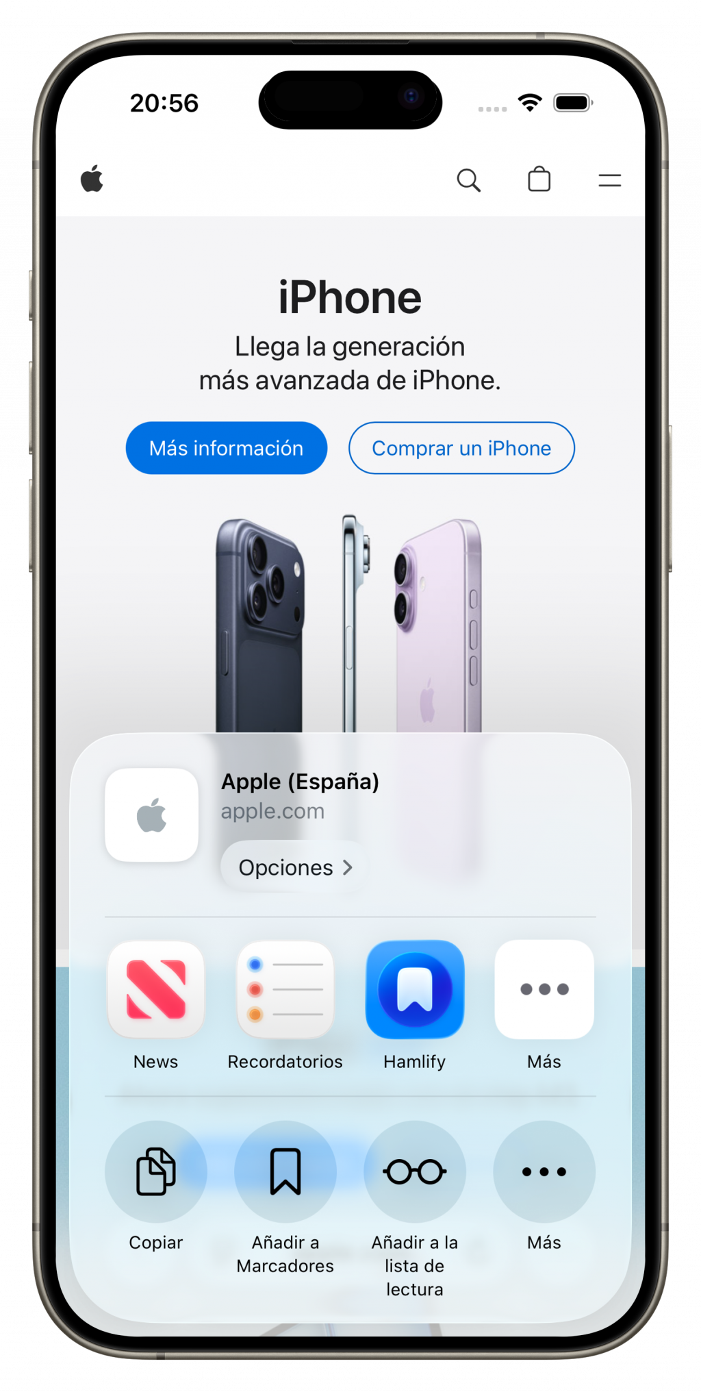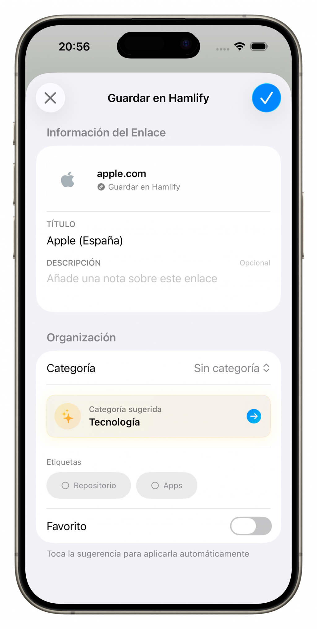 Usa la extensión de compartir para guardar enlaces directamente desde Safari®, Google Chrome® o cualquier otra app en segundos.